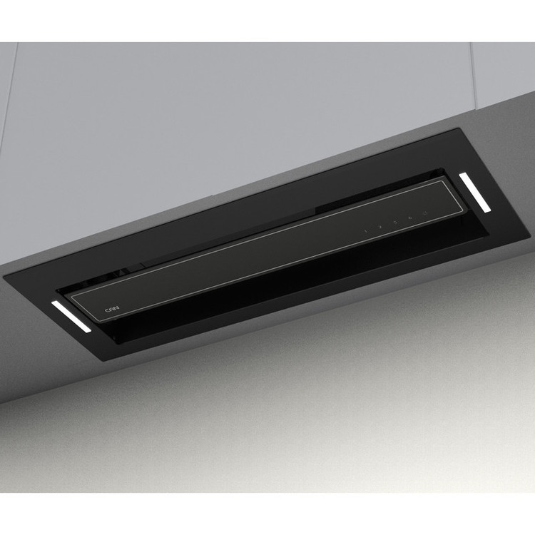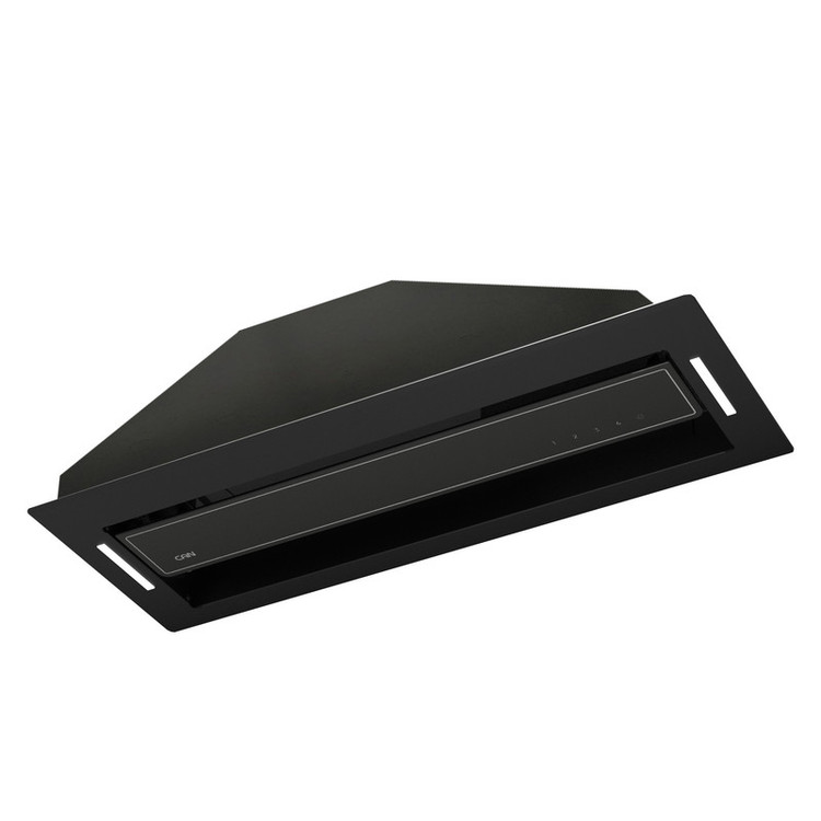 هود توکار آرتیما 11- سایز 80 سانتیمتر- کلید لمسی- رنگ مشکی- قدرت مکش 700 متر مکعب- دور موتور 4 دور توربو- کنترل از راه دور و تایمردار- سنسور دود و حرارت ندارد- درب جکی گازی دارد