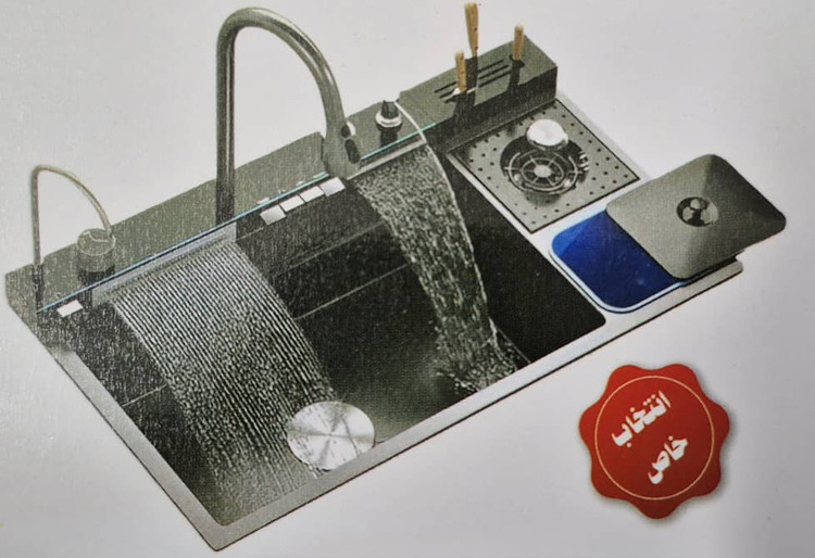 سینک آشپزخانه HUADIAO مدل100 سانتیمتر با طراحی مدرن و امکانات هوشمند، انتخابی ایدهآل برای آشپزخانههای لوکس است. این مدل از نوع آبشاری (پیانویی) بوده و با داشتن ۵ کلید کنترل لمسی امکان تنظیم جریان آب، دما و حالتهای مختلف شستوشو را فراهم میکند.
